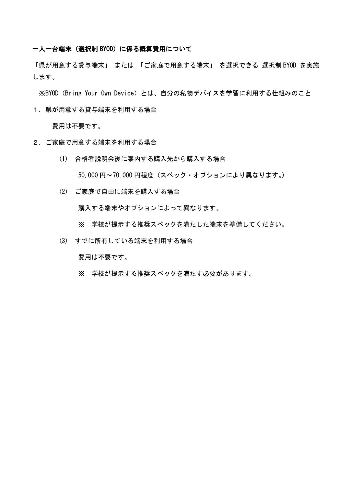 BYOD費用説明
